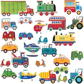 RoomMates RMK1132SCS Transportation Peel & Stick Wall Decals: Home Improvement. Planes, trains, cars, trucks, taxi cabs, scooters, buses, tractors, and helicopters are all included in this set. Beep beep, coming though! Watch out for all things on wheels with our transportation peel-and-stick wall stickers. No driver's license required! Just apply onto any smooth surface--walls, furniture, accessories, and much more.