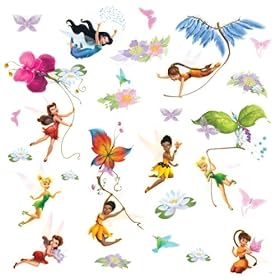 RoomMates RMK1493SCS Disney Fairies Wall Decals with Glitter Wings: Home Improvement. Featuring Tinker Bell, Fawn, Iridessa, Rosetta, and Silvermist, this set is sure to delight little girls who love the sweet and charming Disney Fairies. Bring home the magic of the Disney Fairies with this enchanting set of wall decals.