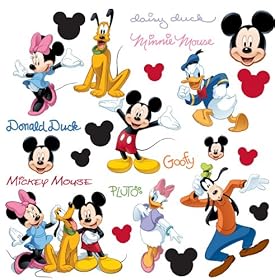 RoomMates RMK1507SCS Mickey and Friends Peel & Stick Wall Decal: Home Improvement. Featuring Mickey, Minnie, Donald, Daisy, Goofy, and Pluto, these stickers are sure to delight children big and small. Bring the fun of Mickey and his friends to your child's room with this charming set of wall decals.