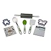 Sassafras Little Cook Kids Kitchen Tool Kit: Kitchen & Dining. All tools come in a clear vinyl carrying case that travels easily to a friend's kitchen and keeps all utensils clean when not in use. Got a little helper who insists on being your sous chef during food preparation? The tools in this kit are appropriately sized just for kids and are safe for children to use. The kit comes with a set of blue plastic measuring cups in 1/8-, 1/4-, 1/3-, 1/2-, and 1-cup sizes and red plastic measuring spoons for 1/4-, 1/2-, and 1 teaspoon and 1/2- and 1 tablespoon sizes. Kids learn valuable math concepts by measuring out quantities with these cups and spoons. In addition, the kit has a plastic funnel for no-mess pouring of liquid ingredients. Other tools include a wire whisk with a rubber-coated non-slip handle for beating eggs or batter, a wooden rolling pin for rolling out dough, a rubber spatula with a wooden handle for scraping every last bit of batter or frosting from a bowl, and a wooden spoon for stirring thicker concoctions. A metal melon baller with two scoop sizes gives fruit salads a dressier presentation. Finally, a pint-sized wooden-handled metal spatula is easier for kids to control when flipping mini burgers or removing cookies from a baking sheet. This kit is a great gift for children who are clamoring to be involved during meal preparations.