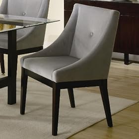 Set of 2 Upholstered Dining Side Chairs: Home & Kitchen. The shaped chair back along with the fabric offers a comfortable dining experience. Gray microfiber fabric engulfs the cappuccino finished frame of this dining chair set. This durable fabric is comfortable and will last through family dinners, dinner parties, and holiday gatherings for years to come. The gray fabric color and opposing cappuccino finished frame give this dining chair set a sophisticated look that will make any dining room a display of style.