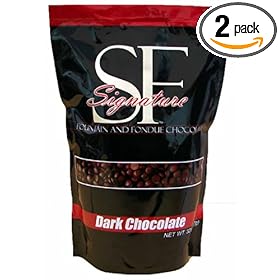SF Signature Fondue Chocolate, Dark Chocolate, 28-Ounces Pouches (Pack of 2): Grocery & Gourmet Food. The microwaveable bags are quick and easy to use; simply heat and pour. SF Signature Dark Chocolate Fondue is absolutely smooth and silky. Designed to work perfectly in fondue fountains with no oil additives, the creamy taste of this sweet chocolate will wow your guests. Signature Dark Chocolate Fondue is made in the Belgian Style with 100% natural, Kosher-certified ingredients, including African cocoa beans, which allows the chocolate to melt to the right consistency for use in a fountain without adding oil. SF Signature tests their fondues numerous times to get the perfect combination of taste and flow for both commercial and home fountain users.
