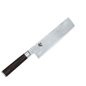 Shun Classic 6-1/2-Inch Stainless-Steel Nakiri Knife: Kitchen & Dining. Hand washing the knife is recommended. Made from VG-10 stainless steel, Shun knives are specially constructed to be harder, less brittle, but also more flexible than traditional steel formulations. The VG-10 core is clad with 16 full layers of SUS410 high-carbon stainless steel on each side, for a total of 33 layers. These layers not only protect the VG-10, they create an exquisitely detailed surface reminiscent of Damascus or pattern-forged steel, the kind once used for Samurai swords. As a result, the knives are simply stunning to look at--much like antique Damascus knives but without their tendency to rust. The 6-1/2-inch blade of this Nakiri knife works great for slicing and dicing, and like many Asian-style knives, its handle is especially suited to smaller users. In contrast to the traditional round profile, however, Shun handles are D-shaped to prevent the knife from twisting in the hand, which provides extra stability and a firm grip. The handle is made from ebony-colored PakkaWood, a fused blend of hardwood veneers imbued with waterproof resin that combines the warmth and traditional look and feel of wood with the strength and durability of plastic. The offset stainless-steel bolster is designed for ergonomic comfort and maximum safety, while a stainless-steel end cap provides the finishing touch. The Nakiri knife measures approximately 11 by 2 inches and carries a limited lifetime warranty.