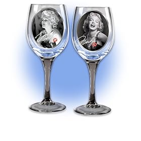 Marilyn Monroe Signature Wine Glassware Set by The Bradford Exchange: Kitchen & Dining. Now, you can celebrate this beloved star with this set of two sparkling Marilyn Monroe? wine glasses, a first-ever exclusive from The Bradford Exchange.Exquisitely handcrafted, each collectible features classic black and white Marilyn Monroe photographs and her replica signature sealed with a lipstick kiss. Each glamorous image is framed in gleaming platinum tones while the glass stems and bases are meticulously hand-painted. Her stunning looks and stylish fashion stole the hearts of millions around the world. Strong demand is expected, and you won't want to miss out on this limited-edition treasure.