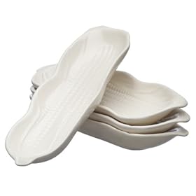 Signature Housewares Farmers Market Stoneware Corn-on-the-Cob Dishes, Set of 4: Kitchen & Dining. Each dish measures 10-1/2 by 3-1/2 by 1-1/4-inch. Enjoy every nibble with these charming corn-on-the-cob dishes from the Farmers Market collection by Signature Housewares, inspired by retro-Americana and the bountiful produce found at local farmers' markets. Each ivory-glazed dish in this set of four is formed and embossed in the shape of a fresh ear of corn. Constructed of glazed stoneware - a dense, strong, and durable ceramic especially appropriate for functional ware - they hold up to constant use and are Microwave and dishwasher-safe. The set is attractively presented in a corrugated-paper gift box - a great gift for mom, teacher, or gardener.