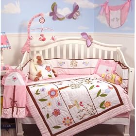 SoHo Pink Summer Bird Songs Baby Crib Nursery Bedding Set 13 pcs included Diaper Bag with Changing Pad & Bottle Case: Baby. This Set Fits all Toddler Beds and Cribs (Single or Convertible) (USA, UK, AU, Etc..) The Set includes following 10 pieces: * Hand Embroidery Crib Quilt * Hand Embroidery Crib Bumper * Fitted Sheet * Crib Skirt (Dust Ruffle) * 2 pieces of Window Valances * Diaper Stacker * Toy Bag * Baby Pillow * Baby Bib.