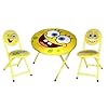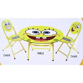 Spongebob Squarepants 3-Peice Table and Chair: Home & Kitchen. The Table and Chair set is made up of tubular steel construction with wooden padded vinyl table top and seats. Spongebob Squarepants 3-Peice Table and Chair set is perfect for your little one to dine in his/her own table set!! The Spongebob Squarepants 3-Peice Table Set is yellow and comes with folding table and 2 folding padded chairs. There's an image of the Spongebob on the middle of the table.
