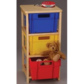 StoreMore Three Bin Vertical Wood Storage Rack: Toys & Games. Solid wood frames fit firmly together with the use of a screwdriver. Jumbo removable bins hold toys, books, sports equipment, etc.