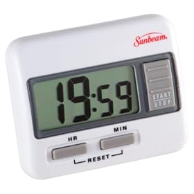 Sunbeam Digital Large Display Timer: Kitchen & Dining. Digital display makes it easy to read and allows for precise timing. Sunbeam's Digital Large Display Timer is convenient and easy to use. Times up to 20 hours and has magnetic back for accessibility.