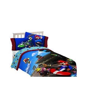 Super Mario The Race Is On Comforter Set, Twin/Full: Home & Kitchen. Bright blue ground Twin/Full Comforter features Super Mario as he races around the track to the finish line.