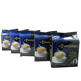 Tassimo T-Discs: Gevalia Crema T-Disc Pods (Case of 5 packages; 80 T-Discs Total): Grocery & Gourmet Food. All the brewing happens inside the T-DISC using a unique inverse flow. The ingenious Tassimo Disc (T-DISC) is designed to work exclusively with the Tassimo Hot Beverage System. Each T-DISC contains a precisely measured amount of coffee, tea, chocolate or concentrated milk, and is sealed to protect the precious flavors inside. Your beverage pours directly from T-DISC into the cup so you can prepare different drinks, one after the other.Gevalia Créma Coffee offers the unique, inviting aroma of Gevalia Signature Blend accented with a delicate layer of velvety foam.When you order this item you will receive one case of 5 packages of Gevalia Crema.