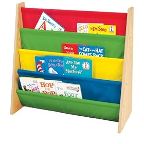 Tot Tutors Book Rack, Primary Colors: Home & Kitchen. As the book rack includes some small parts which pose a choking hazard, it is not advised for children younger than three years old. Foster an early love of books in a toddler with this colorful book rack from Tot Tutors. With its small size and pocket book storage, the book rack enables small children to identify and retrieve favorite picture books for perusal. The book rack’s design also promotes the child’s development of organizational skills; a toddler can return books to the book rack with greater ease than a standard bookshelf. In bright red, blue, yellow, and green, the book rack’s five nylon fabric pockets afford flexibility for books of varying sizes and lengths. Capacity varies depending on book size and weight. To support the books and pocket, the book rack features a sturdy wood frame with natural wood finish. The book rack is designed for children ages three and up. The book rack requires some home assembly.