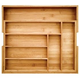 Totally Bamboo Expandable Utility Drawer Organizer: Kitchen & Dining. Plus, this bamboo is not a food source, or a habitat, for the Giant Panda. Simplify your life and beautify your utensil drawer with Totally Bamboo's Expandable Utensil Drawer Organizer. It measures 18-inch long, 12 3/4-inch wide and 2-inch high and expands to 17 1/2-inch wide. Have a custom fit, beautiful utensil drawer organizer that is durable. Made of strong bamboo. Organizer has a tri-ply, cross laminate construction with a specially formulated high temperature adhesive. All of Totally Bamboo's items are distinctively attractive, super strong, and totally -inchgreen!-inch The benefits of using bamboo are numerous. For example: bamboo is 16 percent harder than maple, it’s naturally anti-microbial; it holds the promise of a sustainable, cost effective, and ecologically responsible alternative to the widespread clear cutting of our old growth forests. Totally Bamboo uses organically grown Moso bamboo, so you need not worry about harmful pesticides or fertilizers. Totally good for you and totally good for the environment! Bamboo is easy to maintain.
