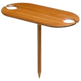Tovolo Outdoor Wine Bamboo Table: Kitchen & Dining. Also doubles as a cutting board. An affordable must-have accessory for the wine lover. Enjoy your favorite wine at the park, beach, outdoor concert, or in the backyard without the worries of spilling or tipping. Natural bamboo outdoor table securely holds two stemmed glasses along with your appetizers or desserts. Just wipe clean.