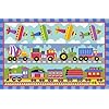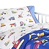 Trucks Tractors Cars Boys Blue and Red Twin Bed in a Bag: Home & Kitchen. pocket)One Standard Pillowcase (20 in. Trucks and Tractors Twin Bed in a Bag - Multi (NEW in Original Packaging)Vroom, vroom, decorate my room! This cute, cartoon-inspired Trucks and Tractors complete bedroom ensemble features large animated drawings of trucks, tractors, cars and planes rendered in bold primary colors of crimson red, navy blue, sunshine yellow, grass green, sky blue, white, black and gray.The face of the comforter features a graduated design of horizontal bands, highlighting blimps and planes sailing among puffy clouds in the sky at the top of the comforter, followed by a band of police cars, motorcycles, taxi cabs and cars on a stylized city street, a band of street signs and traffic lights, and a wide band of construction vehicles and farm tractors across the bottom of the comforter. The comforter reverses to a classic wide gingham check design in sky blue and white.The standard flanged pillow shams spotlight a large concrete mixer and a police car, framed by a square of yellow and black caution tape and a wide navy blue border.The coordinating, 180-thread-count sheets and pillowcases feature an allover small scale design of various vehicles in a horizontal striped layout on a white ground.All components are constructed of an easy-care blend of 60% cotton and 40% polyester, and are machine washable.A coordinating three-piece window treatment set is available and can be purchased separately.Bed in a Bag includes: One Twin Comforter (66 in. W x 86 in. L) One Standard Sham (20 in. W x 26 in. L)One Twin Flat Sheet (66 in. W x 96 in. L)One Twin Fitted Sheet (39 in. W x 76 in. L x 10 in. W x 30 in.