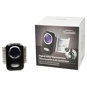 Trudeau Digital Wine Thermometer: Kitchen & Dining. By Trudeau a company that develops visionary products. Enjoy your wine at the proper temperature with Trudeau's Digital Wine Thermometer. The self activating devise clips around a wine bottle and provides the temperature in either Fahrenheit or Celsius, with suggested temperatures for popular red and white wines printed in the stainless steel band. One year warranty. Add an exciting flavor to your day, with Trudeau.