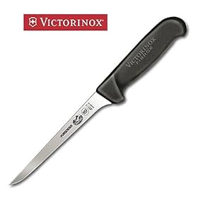 Victorinox 47513 6-Inch Flex Boning Knife with Fibrox Handle: Kitchen & Dining. A good heft and comfortable, positive grip are indications of a well-made knife. From the inventors of the famous Swiss Army knife comes a line of fine cutlery designed for accomplished and aspiring chefs at work or in the home. Each blade in the Stamped collection is expertly made in Switzerland from high-carbon stainless steel and undergoes a special tempering process for an edge that can be resharpened again and again. The result is a knife that can keep its original sharpness throughout the entire life of the blade. Each blade is conical ground throughout its length and depth, and laser tested to ensure optimum cutting power and durability. Ergonomically designed to minimize wrist tension, the unique, patented Fibrox handles are slip resistant when wet. Plus, all Stamped cutlery with Fibrox handles is approved by the National Sanitary Foundation (NSF). Although cutlery steel is naturally sanitary, materials and construction details of these handles minimize crevices that may otherwise offer hospitality to bacteria. The Victorinox Stamped collection is an extensive range with open-stock pieces as well as handy and versatile sets. The 7-inch Santoku knife combines the features of a cleaver with those of a chef's knife. Its unique shape lets it scoop up whatever has been chopped, or be used as a spatula. The flutes of the Granton Edge help make paper thin slices and prevent food from sticking to the blade. All Stamped cutlery should be washed by hand for best care, and Victorinox covers each piece with a lifetime warranty against manufacturer defects. From the Manufacturer Who is Victorinox? Although Victorinox is known the world over as the creator of the Original Swiss Army Knife, the company started out in 1884 as a cutlery workshop. By the time company creator Karl Elsener delivered his first pocket knife to the Swiss Army, his cutlery business was already booming. Over the next century, Victorinox cutlery became a top-rated choice among professionals worldwide, with over 300 blades to offer. Victorinox knives have regularly appeared as highly ranked and recommended kitchen tools in Cook’s Illustrated, Men’s Health, The Cincinnati Enquirer, New York Magazine, and Natural Health, just to name a few. In 2009, the company announced a partnership with professional chef, Daniel Humm, of Eleven Madison Park in New York City. In addition, building on the success of its cutlery business, Victorinox has brought all the same quality and expertise to a wider range of products and accessories, including other kitchen tools, pocket tools, watches, luggage, and clothing. Who is R.H. Forschner? Victorinox had been a staple in European commercial cutlery for over 50 years when approached by New York’s R.H. Forschner, known since 1855 as a builder of scales for butchers, to be their sole cutlery supplier. The two companies joined forces in 1937, and R.H. Forschner subsequently became North America’s dominant professional brand, as ubiquitous in the bustling meatpacking plants of the Midwest as it is in the gleaming, four-star restaurant kitchens of Midtown Manhattan. As a division of Victorinox/Swiss Army Brands, R.H. Forschner marketed cutlery under the brand name “RH Forschner by Victorinox” and distributed to the commercial, food service, and retail trade classes. That brand has been considered a top choice of professionals worldwide with over 300 styles of blades bearing the R.H. Forschner name. However, in 2009, in conjunction with Victorinox’s 125th anniversary, the company, Victorinox Swiss Army, Inc., has deci[6662] The R H Forschner by Victorinox Boning Knife features a 6-inch straight, flexible blade to maneuver around bones. High carbon, stainless steel blade, is hand finished at Victorinox in Switzerland by skilled craftsmen. A special tempering process is used to produce an edge that can be resharpened over and over again, so the knife can keep its original sharpness throughout the entire life of the blade. Victorinox handles are ergonomically designed to minimize wrist tension. They provide a natural fit. A sure-grip handle with a finger guard is valuable feature since the handle inevitably gets greasy, wet, or both.