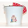 Vintage-style Pink Nursery Rhyme Baby Bucket: Baby. A nursery rhyme decal adorns the bucket along with a ribbon. Take a hop, skip and a jump back into the good ol' days with this darling vintage-style enamelware bucket in pink. Bundle your gift in it for the baby shower, then afterward the mommy-to-be can use it to hold diapers on the changing table or just display on a shelf.