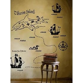 Pirates Map Wall Decal: Home & Kitchen. Start slowly and slowly peel the design off.2. Ahoy Matey! This pirates map wall decal will bring out the treasure seeker in anyone. Each element can be arranged hower you would like, in order to make your trip to Tiburon Island the most exciting adventure ever. Check out our How-To-Apply video! Basic Decal Application Instructions. Wall decals are safe and fun to use. Paint can be messy and take hours, whereas wall decals can go up in minutes. The vinyl sticker surface allows you to plan out your design before ever permanently fixing to the wall. Once you buy your decal design pack, you can simply arrange the individual pieces on the surface of your wall by simply using some painters tape or clear scotch tape. Once you know exactly where all the pieces will go, just remove the paper backing and stick your entire decal to the wall. Make sure to press and rub firmly against the vinyl surface before removing the clear adhesive. Tips for Removal (In the slim chance that you want to take down one of your designs...) SlickSticks™ are made to stay on and be durable yet removable..however you should use caution in removing slicksticks. The type of surface they are applied to and how long they have been up can affect how smoothly they remove. Here’s the most important recommendations: 1. Do not rip the design off of painted surfaces…this may pull some paint with it….(you know…common sense like)3.