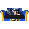 Warner Brothers Rocking Chair, Batman: Baby. You can create a whole room setting in these vibrant colors of blue, yellow and black. Batman Rocking Chair, your child's very own chair. Fun place to sit, visit with friends or watch a favorite movie. This rocking chair has extra touches for that designer look such as front arm panels and hard resign rockers. The hard resign rockers are very strong to handle the rigors of today's kids. The construction is hard wood frame covered with poly urethane foam and upholstered in soft to the touch, yet durable polyester fabric. The fabric is easy to clean with mild soap and water. The seat bottom measures 13' x 13' and 11 inch to the floor. There are coordinating furniture items such as a toy box, recliner and sofas available to match this cute rocker. Other items sold separately.