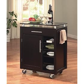 West Port Kitchen Cart - Coaster 910012: Home & Kitchen. It features an elegant style with a black finish and custom nickel hardware. The West PortKitchen Cartadds even more workspace to your kitchen. Add space with a cabinet, adjustable shelf, and a drawer.In addition it also serves as a mobile bar.This kitchen island cart is usually in stock and will ship at no additional charge.