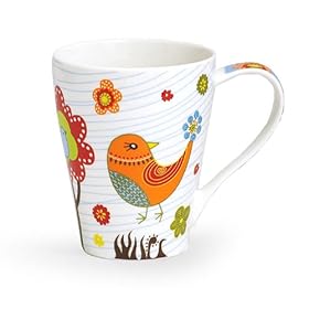 Whimsical Bird & Flower Bone China Coffee Mug with Matching Gift Box Bright Design: Kitchen & Dining. Adorable mug for our bird lovers.