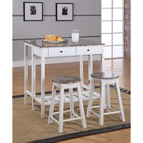 3 Pc. White Finish Wood Drop Down Table & 2 Stools: Home & Kitchen.