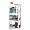 White Medium Basket Shelf (White) (34H x 21W x 15D): Home & Kitchen. No tools required for assembly. Use the White Medium Basket Shelf in any room of the home, even outside, for a great organizational solution to many cluttered areas! Four polypropylene shelves with a basket style design keep stored items from falling on the floor and are ventilated for air flow and easy cleaning. This plastic shelving unit can be used as a toy organizer, as garage shelves and more! Each tier holds 50 lbs. Available in several colors. Made in the USA! Assembly level/degree of difficulty: Easy.