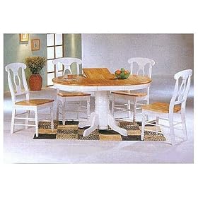 White Napoleon 5 Piece Dining Set By Coaster Furniture: Furniture & Decor. Make this item yours today to beautify the decor of your home. 5pc White & Natural Oval Dining Table & Napoleon Solid Wood Chairs Set This is a brand new 5 pieces dining table with chairs set. The set is designed with 42Dia Natural and white dining table with empire base and 15 inch center leaf, expandable to 42x57 inch and white Napoleon dining chair with natural finish solid wood seat. The dining chair has an open oval motif back with curving top splat, also has a flower design on the top of the chair back. Set includes table and four side chairs.