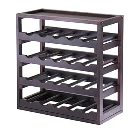 Winsome Wood Kingston Removable Tray Wine Storage Cube: Home & Kitchen. This removable rack version holds 20 bottles on four tiers, three of which can slide out, and is framed by three railed sides and a solid top to snugly fit another cube. A wine collection is a personal expression of taste and style, and a carefully chosen stock deserves an equally individual display. Perfect for modern decors (and both classic and contemporary palettes!), Winsome Wood’s Kingston design offers mix-and-match stackable cubes that showcase those prized vintages while making their own sophisticated geometric statement. Each cube is made of solid and composite woods with a Deep Espresso finish and measures 20 inches wide by 10 inches deep by 20 inches high. Use this cube alone or add on in any direction to customize a configuration.