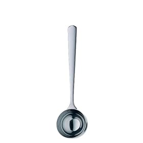 WMF Manaos / Bistro Coffee Measure: Kitchen & Dining. Brew coffee to your exact taste specifications with the Bistro coffee measure. Leave frippery behind and embrace stylish, modern functionality with the WMF Bistro flatware line. Created by Peter Baurle for everyday dining or casual entertaining, Bistro is crafted from tarnish-resistant 18/10 stainless steel with a high-polish mirror finish. Its handles feature rounded sides, slender necks, and gentle flares, capped by slight facets at the tips. Proportions and weight are comfortable, and the working ends have a contemporary style without sacrificing purpose. To allow for a perfectly customized collection, Bistro pieces are sold open stock with a wide selection of place setting pieces and serveware. A sleek and appealing little piece, the measure combines a rounded bowl and a trim handle that make leveling off grounds easier.