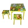 Kids Wooden Round Table and Chairs Set with Storage - Jungle Theme: Toys & Games. The table set is a great place to eat, paint, play with a friend and more. This fun and functional 3 piece jungle theme round table and chairs set is made of sturdy wood construction and finished with non-toxic paint for safe and easy to clean surface.