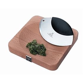 Wusthof 2-Piece Mincing Knife and Cutting Board Set: Kitchen & Dining. Wusthof not only uses the best materials to make a fine knife, but it is also crucial that each blade is precisely tempered. Wusthof 2piece mincing set includes an 8 inch mezzaluna and cutting bowl designed to the shape of the blade. The Mezzaluna is a staple of Italian kitchens, named after its shape Half-Moon this knife is used for cutting herbs and making pesto. The mezzaluna also makes cutting onions and celery a joy. The rocking action of the blade cuts much like the action of a cooks knife. Wusthof uses a special blend of German steel through out the whole length of the knife. This tempering allows the knife to hold its edge for an extremely long time.