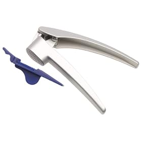 Zyliss 12040 Jumbo Garlic Press with Cleaner: Kitchen & Dining. Best of all, its included cleaning tool sports tiny teeth that fit perfectly into the pressing surface, removing all traces of garlic fragments in one smooth move. A kitchen essential, this jumbo-size garlic press makes it easy to cook with fresh garlic. The unit can accommodate several cloves at a time, with a clever design that eliminates the need for peeling prior to pressing. Simply place unpeeled cloves into the oversized hopper and firmly squeeze the ergonomic handles together. The press instantly removes the peelings and extracts the garlic bits and juice through its mesh shield, creating a fine dice that would have otherwise required several steps with a knife and cutting board. Use the handy tool to add fresh garlic to authentic Italian dishes, delicious homemade breads, savory soups, and more.
